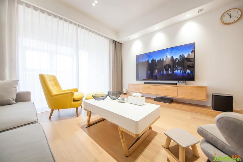 整面柜子與茶幾,一上一下,一動一靜,形成浮動而平衡的美感。