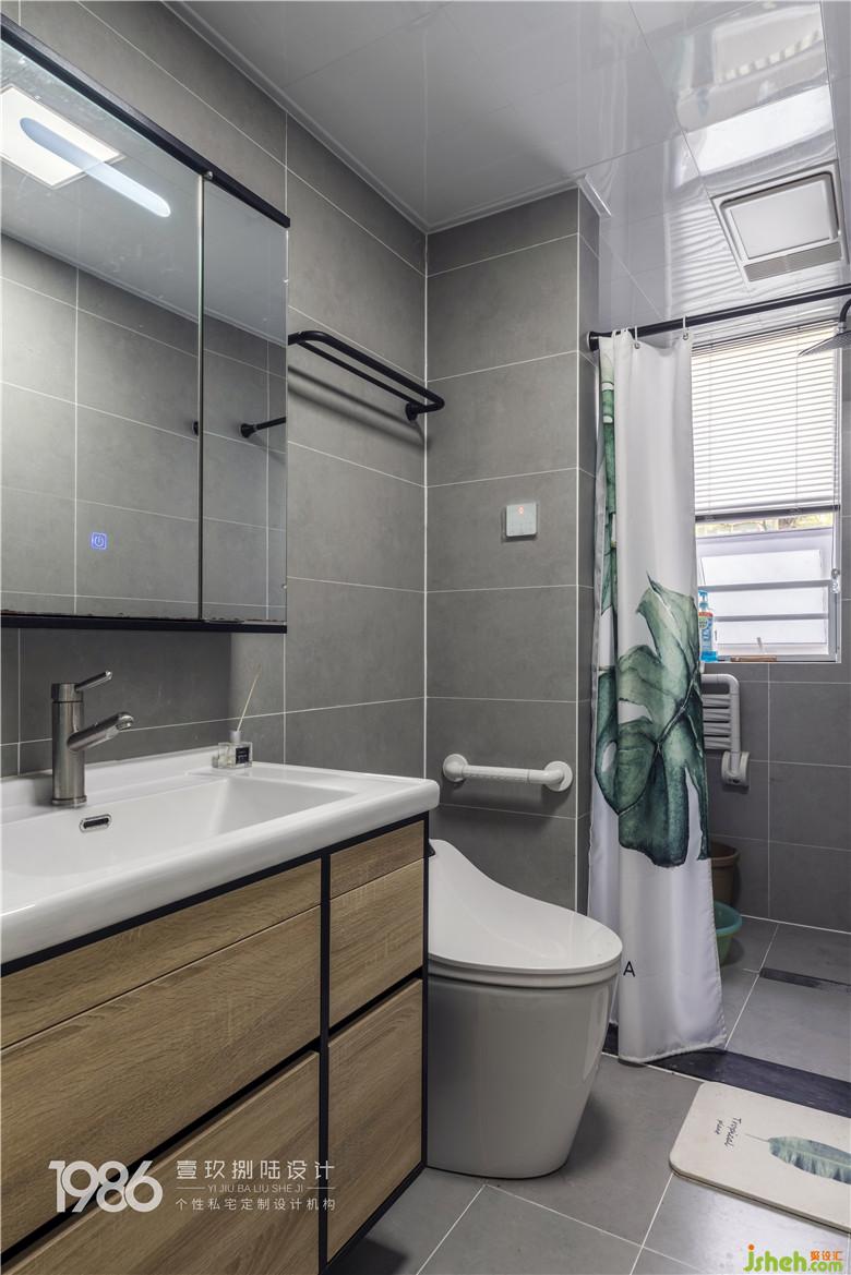 主衛(wèi)和次位都實現(xiàn)干濕分區(qū),方便平時的使用與衛(wèi)生處理。主衛(wèi)明黃色的浴缸照亮了整個空間,暖暖的泡浴給予身心一種愉悅的放松;次位馬桶旁室內(nèi)設(shè)計師有為老人設(shè)計的扶手,小小的細(xì)節(jié)是這個家溫馨的點點滴滴。