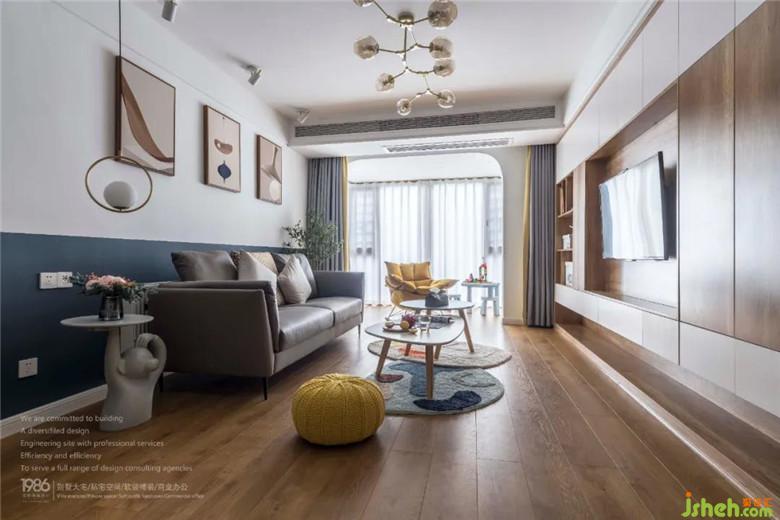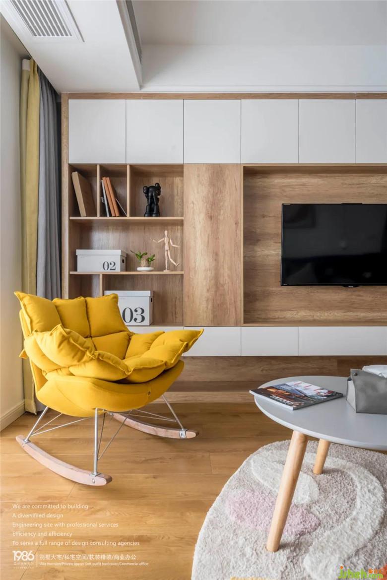 整墻的電視柜設(shè)計(jì)給了家更多的儲(chǔ)物空間,裝修公司讓電視機(jī)的擺放融入其中。