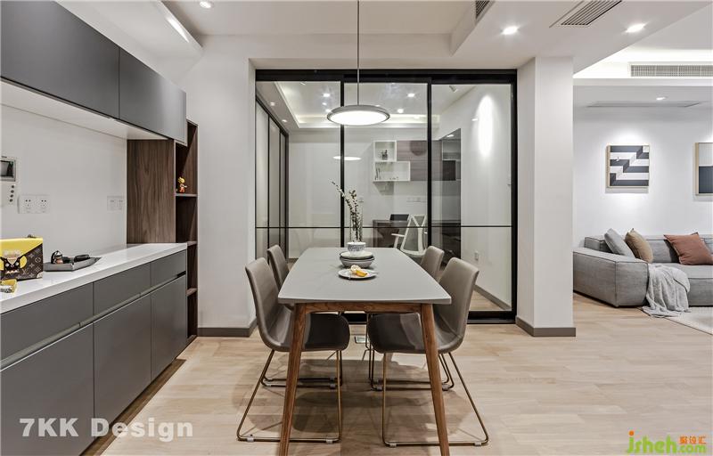 餐廳的亮點(diǎn)就是大面積滑軌移門,它的隔音效果非常棒,后面的私人的辦公地方,只要覺得外面吵就可以拉上門,不管是在移門的厚度上還是在定向滑動(dòng),幾乎沒有噪聲。旁邊的收納柜,平時(shí)放置一些物品以便出門方便拿取上海室內(nèi)設(shè)計(jì)師。