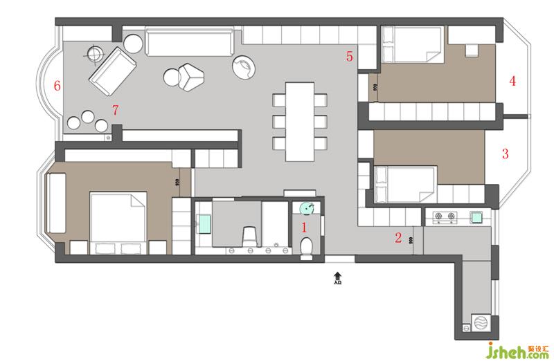 1、4人居住,夫妻兩人,女兒7歲,兒子5歲,需要3個(gè)獨(dú)立房間。