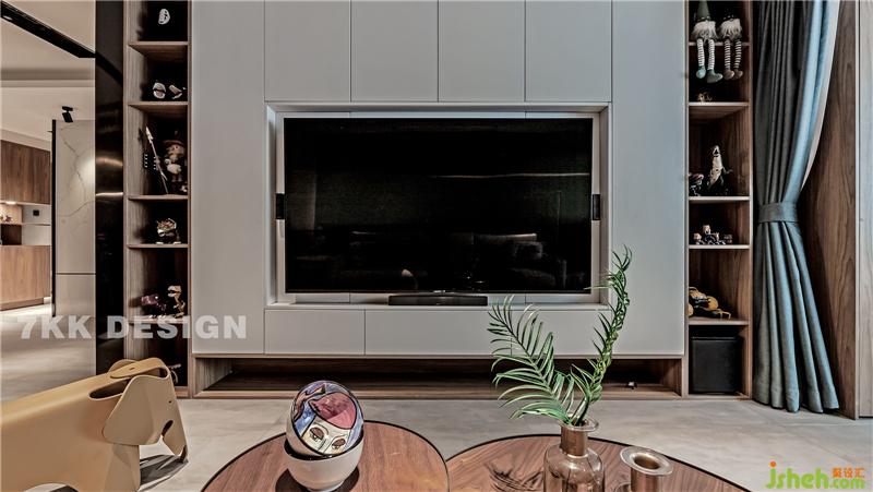 嵌入式電視柜,鏤空設(shè)計(jì)展示業(yè)主的一些手作和小朋友的玩具很有家的味道,如果是書籍整體裝飾性會更具藝術(shù)性哦。