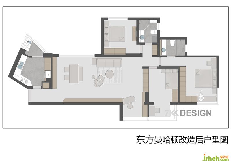 原始戶型圖 這是一套帶有異型空間的戶型,每個(gè)空間都有一面窗戶,所以房屋的采光還可以。