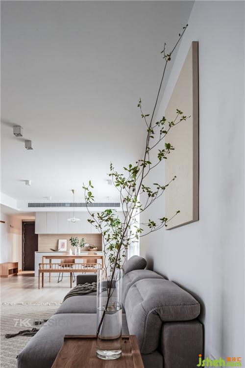 北歐風(fēng)情的灰色沙發(fā),沉穩(wěn)而低調(diào),搭配寓意帶來(lái)幸福的日本吊鐘,純凈白色的墻體,飽含生機(jī)而不失氣質(zhì),看一眼便能讓人內(nèi)心平和而舒適。