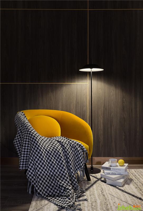 客廳是由吧臺(tái)和硬包床頭“圍起來(lái)”的空間,整體造型簡(jiǎn)潔,木飾面板+不銹鋼收口線,重慶設(shè)計(jì)師賦予了空間延伸感,讓空間不再局促。舒適的沙發(fā),氛圍恰當(dāng)?shù)拈喿x角,黃色單椅成為了點(diǎn)睛之筆。