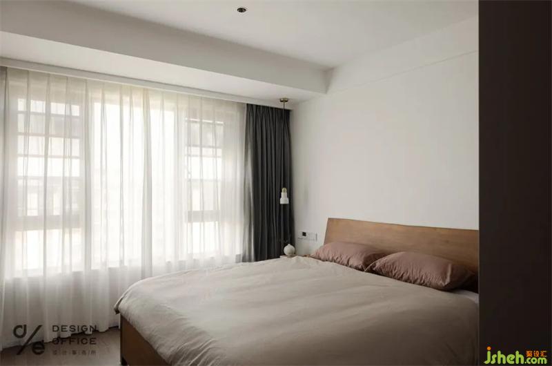 把公區(qū)自然舒適的狀態(tài)延續(xù)到臥室當(dāng)中,墻面沒有做過多的修飾,更多去關(guān)注的是生活化的一些場景。所以選用了跟公區(qū)風(fēng)格一致的原木床,搭配素色床品,充滿韻律感,細膩而耐看。