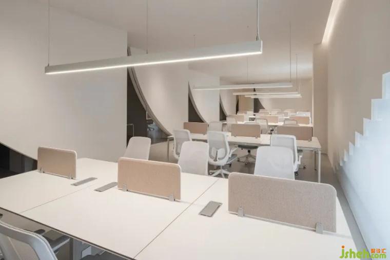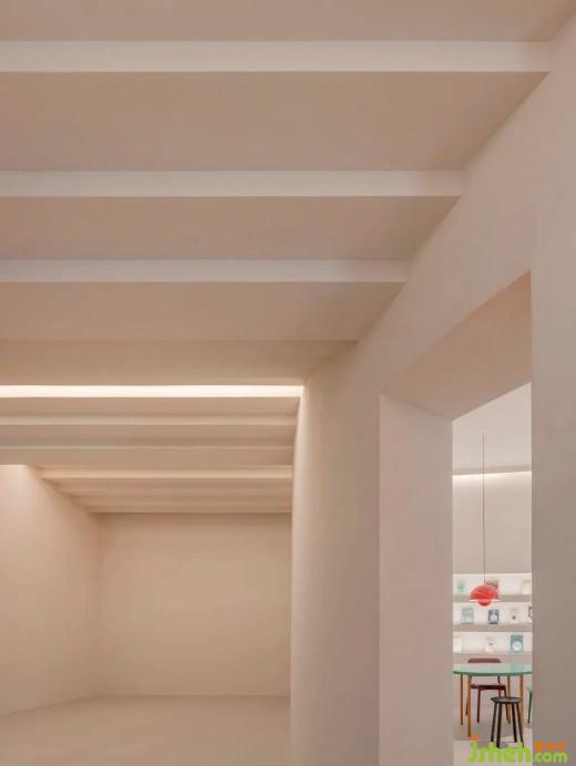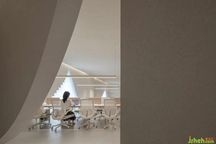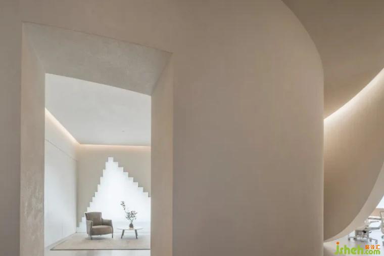此外,Simple Art美術(shù)館鄰近于南淝河,該河流具有豐富的文化記憶與歷史價(jià)值,也被當(dāng)?shù)厥忻穹Q為合肥的母親河,特別是在平日夕陽照射所產(chǎn)生的水波浮動(dòng)效果,展現(xiàn)其河道受自然環(huán)境沖刷變化的千年歷史。因此,Hung And Songkittipakdee(HAS)將南淝河特有的水波,巧妙的轉(zhuǎn)換成空間感知,透過曲面的墻體與起伏的頂面,在午后夕陽光線滲透進(jìn)入室內(nèi)時(shí),頂面有如還原南淝河特有的水波浮動(dòng),其光線倒映著內(nèi)外上下整體空間,建筑本身猶如一幅抽象般的藝術(shù)畫作。該建筑不僅只是一個(gè)提供藝術(shù)展覽與文化交流的美術(shù)館,建筑師Jenchieh Hung與Kulthida Songkittipakdee致力透過空間,激發(fā)當(dāng)?shù)厝藢?duì)于美的好奇與渴望,并在鋼筋混凝土的城市中,帶來一處具有跨時(shí)代精神,連接傳統(tǒng)與當(dāng)代的文化建筑。