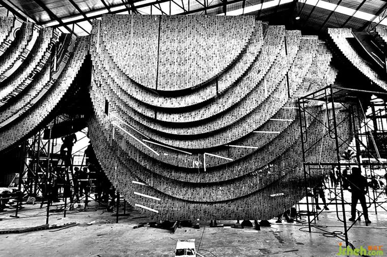 泰國(guó)鋁石窟文創(chuàng)場(chǎng)最終由數(shù)十萬(wàn)根鋁條構(gòu)成整體建筑,設(shè)計(jì)以表皮延續(xù)至空間、空間結(jié)合結(jié)構(gòu)、結(jié)構(gòu)提供多樣化功能之Total-ness Design。這數(shù)十萬(wàn)根鋁條沒(méi)有一根鋁條是相同長(zhǎng)度,每一根鋁條都由工匠精心切割制作,并以手工的方式一片片組裝,而這樣的工藝技術(shù),不經(jīng)讓人聯(lián)想起泰國(guó)寺廟的精心制作,在當(dāng)今工業(yè)化快速發(fā)展中,泰國(guó)鋁石窟文創(chuàng)場(chǎng)以一種非常規(guī)的理念,將傳統(tǒng)與未來(lái)整合,讓泰國(guó)人重新見(jiàn)到本土工藝的可能性。