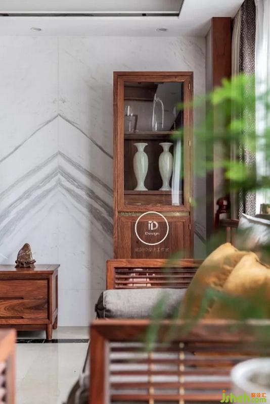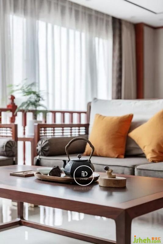 在眾多家具中,我們設(shè)計公司選擇了同樣以“簡潔”設(shè)計為理念的閱梨家具。闊葉黃檀與刺猬紫檀的中式家具,再配上橙色的布藝抱枕,沉穩(wěn)又不失時尚。