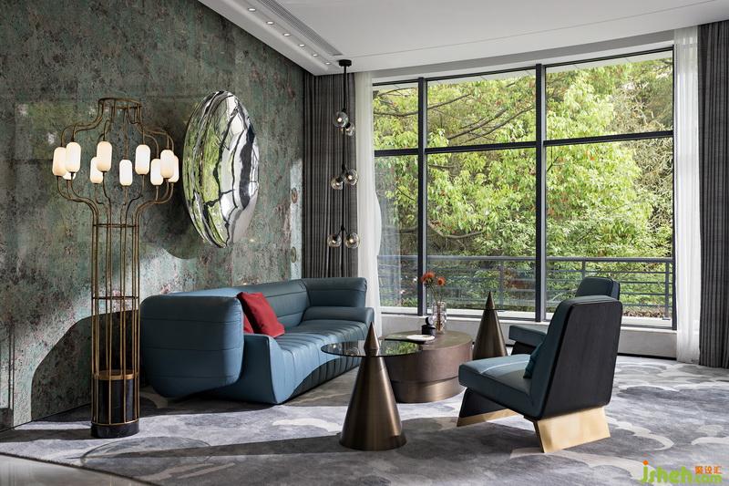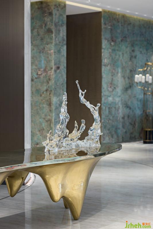 及目所至,全廳地面鋪設(shè)的卡里冰玉玉石,如靜水流深的沉寧。而墻面室內(nèi)設(shè)計師更是大面積采用紋理精美的 天然石材海冰藍作主空間的基調(diào),從而凝聚西湖的人文精粹,一種超越時間的清新雅致。