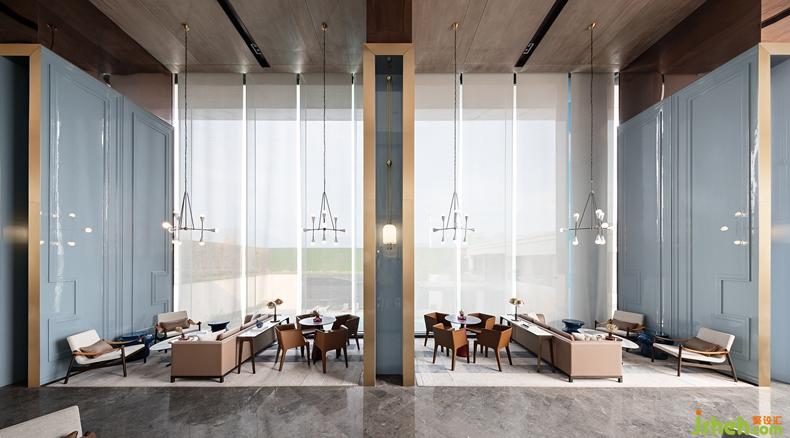 移步至洽談區(qū),設計公司在現(xiàn)代內(nèi)建筑表皮藝術(shù)氛圍包圍下的隔斷墻上,舛花色墻體裝飾無疑是將古典優(yōu)雅的基因濃郁的注入其中。