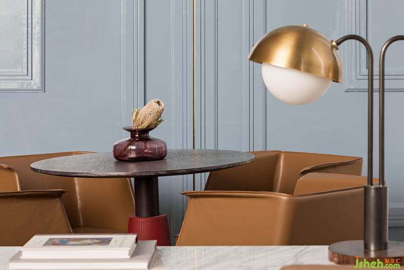 為讓整個空間更摩登,設計公司打破了墻體所定義的風格,沖淡以古典為主導的視覺印象,混入了中國傳統(tǒng)色釉紅與絨藍,讓現(xiàn)代家具在質(zhì)感和細節(jié)上留下現(xiàn)代東方色彩的神韻。