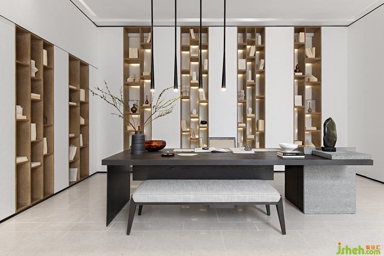 白砂翠竹,亭亭荷葉,水墨山川,空間的色彩與紋理映射著詩意萬象。別墅裝修設計場所的內與外,虛與實,靈與雅,意巢設計用如云綿延、如水清幽的詩性塑造,將城市的喧鬧嘈雜在清雅的場景中“自然化”,在詩意日常中消散成云煙。