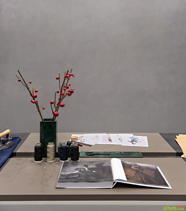 特意為女主人設(shè)計的一間工作室,糅合了現(xiàn)代的極簡形制與東方的清冽秀氣。一方長桌與開放性的掛衣架構(gòu)設(shè)其中,唯一的點綴是幾枝冬青,空間顯得十分靜寧。