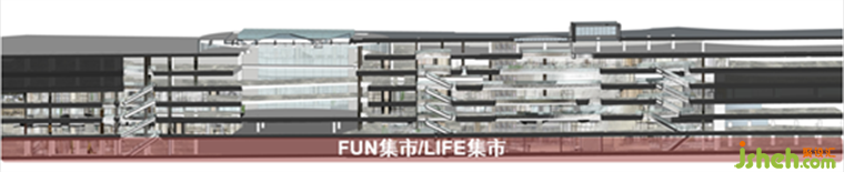兩地塊連廊空間植入生態(tài)溫室的主題,創(chuàng)造自然環(huán)境與商業(yè)結(jié)合,購物廣場(chǎng)設(shè)計(jì)選用自然水元素呼應(yīng)運(yùn)河,打造城市展廳,將綠化空間串聯(lián),延伸至生態(tài)水岸,商業(yè)面跳動(dòng)的綠色植栽更增加項(xiàng)目生態(tài)感。