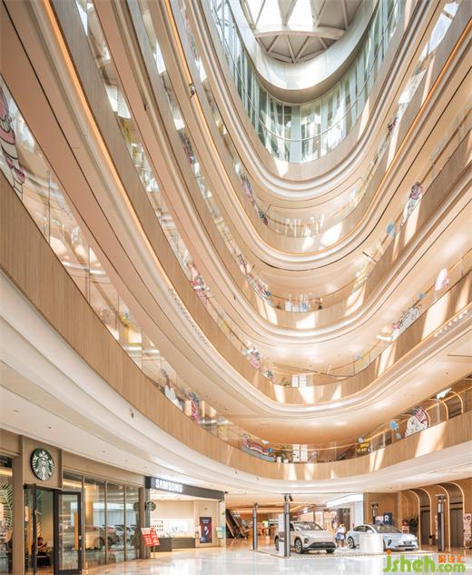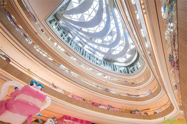 購物廣場設(shè)計塑造一個天頂?shù)乃h逸意象,結(jié)合水鏡天藍(lán)般的視覺天空,成為購物中心的吸睛點(diǎn)。