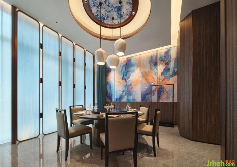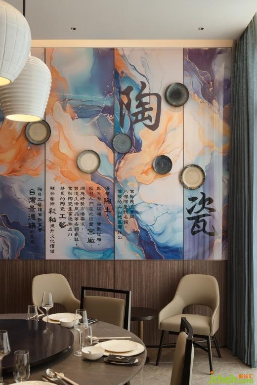 空間設(shè)計(jì)選用具有立體質(zhì)感的晶瓷畫輔助瓷盤裝飾提升空間藝術(shù)感,自帶朦朧光感濾鏡的屏風(fēng),夾絲工藝與長(zhǎng)虹玻璃的碰撞,素雅干凈的陶瓷燈具讓空間更顯高貴典雅。