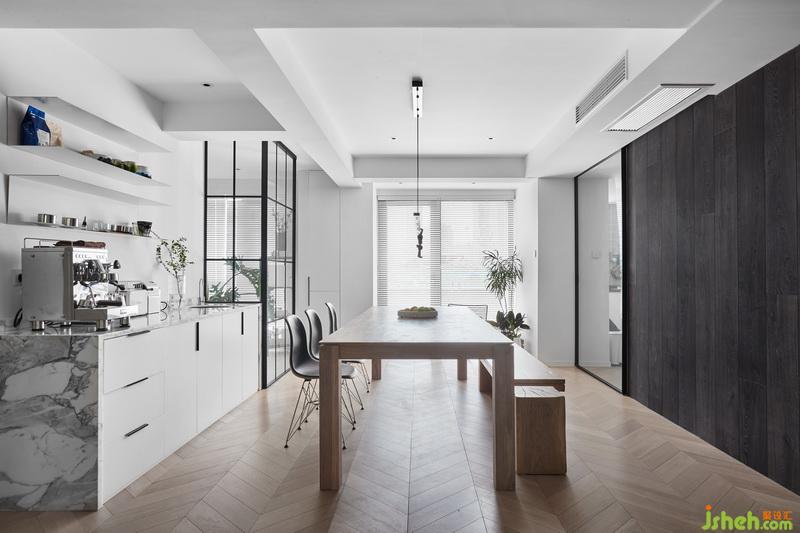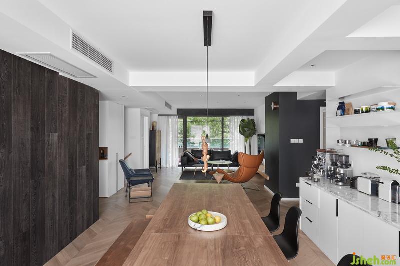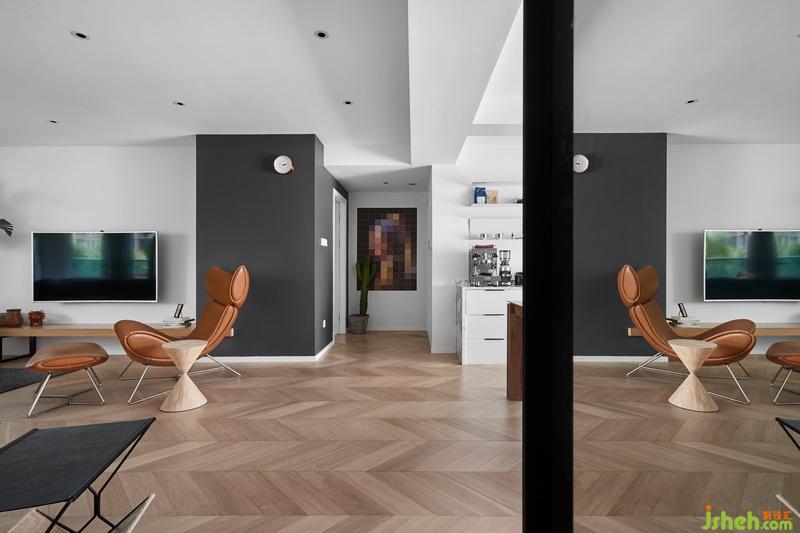 女業(yè)主是一個(gè)很愛生活的一位女性,最開始找設(shè)計(jì)的時(shí)候她希望家對(duì)于她來說,是一個(gè)逃避社交的地方,所以她希望家是舒適的,不用討好任何人。有時(shí)候甚至可以滿足她所有需求,以至于都不用出門。所以才會(huì)有咖啡機(jī),有投影,包括種植物,這些都是可以打發(fā)很多時(shí)間而又不覺得沉悶的。