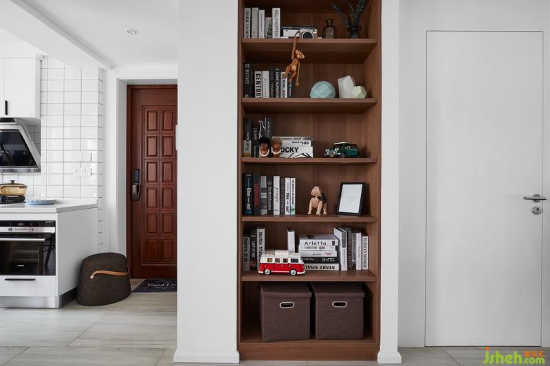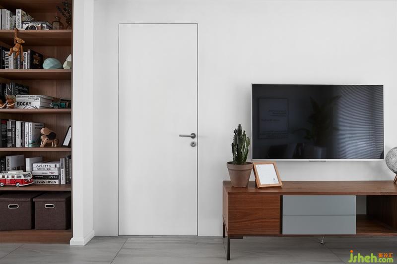 通往次臥的門現(xiàn)場做了白色平板門,也很適合北歐