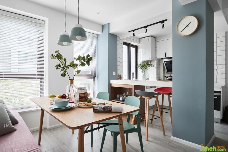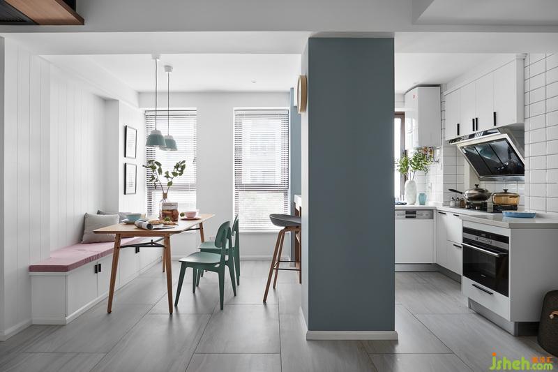 餐廳沒有空間做餐邊柜,在廚房和餐廳之間的吧臺增加儲物就必不可少。
