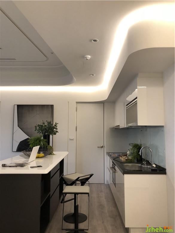 此案創(chuàng)造對於未來的想像,利用線性串連空間情感,打破現(xiàn)有限制。視覺上的錯覺往往可以產(chǎn)生比實際面積感官更大的效果。住宅普遍高度不高,直角也多,導(dǎo)致即使面積大卻仍感受空間小的結(jié)果。設(shè)計手法采用圓弧形的修邊來制造沒有死角的視野。前后錯位的天花造型在相對死板的空間產(chǎn)生了動感與流暢性。不拘泥現(xiàn)狀的設(shè)計適度的隱藏了過多的管線與結(jié)構(gòu)而達成空間的潔凈與單純。深藍色藝術(shù)漆賦予了整體空間一種時尚感??臻g里面雖然開放,區(qū)域性仍然存在。裝修公司