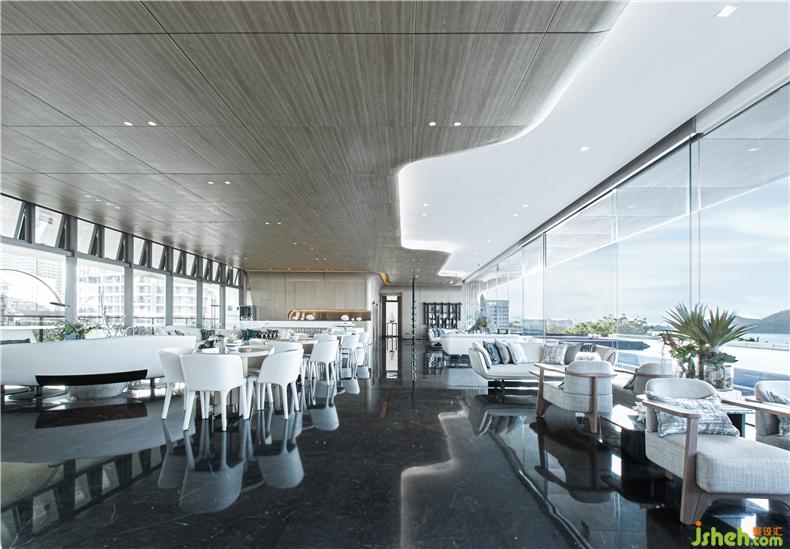 SSID將天然的地理優(yōu)勢與萬寧獨特的文化屬性結(jié)合,將游輪的元素巧妙融合到室內(nèi)環(huán)境中,在有限的空間內(nèi)重組最佳動線設(shè)計。突破傳統(tǒng)售樓處固有印象,在設(shè)計中加以敘事的手法,以游輪概念為起點,將建筑、景觀及室內(nèi)設(shè)計三者融為一體。