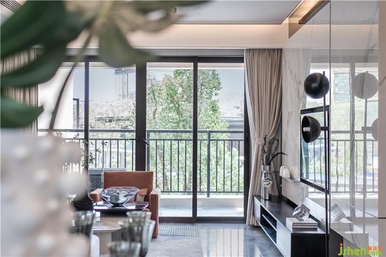 客廳運(yùn)用黑色的細(xì)小線(xiàn)條與大面積柔和的木飾面、大理石的考究比例劃分,結(jié)合開(kāi)放式的書(shū)房,就像透過(guò)穿梭于香港與內(nèi)地的男主人其鏡頭,記錄下最具代表性的影像,進(jìn)而通過(guò)藝術(shù)空間藝術(shù)手法的拼接,樣板房設(shè)計(jì)成為獨(dú)特視角,體現(xiàn)了兩地的緊密聯(lián)系與蓬勃發(fā)展的時(shí)代脈搏