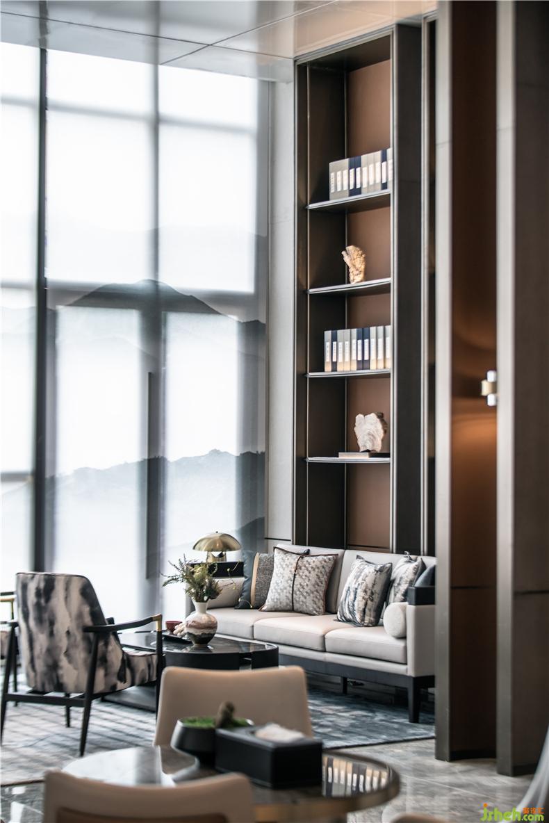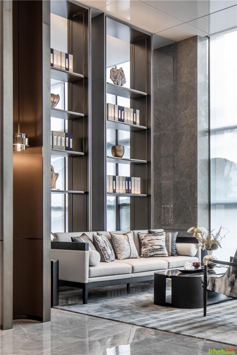 水墨畫造型的家具搭配金屬框架,與代表嶺南意蘊(yùn)的色彩和皮革碰撞,裝修設(shè)計(jì)生出別具一格的沉穩(wěn)舒適感。每一扇屏風(fēng)和展示架都是精心設(shè)置,不同的視角下,原本相離的空間巧妙的交疊相匯,更具層次感,半圍合半開放的設(shè)計(jì),考慮到洽談區(qū)的私密性需求,同時(shí)滿足了一部分的空間通透性
