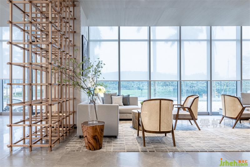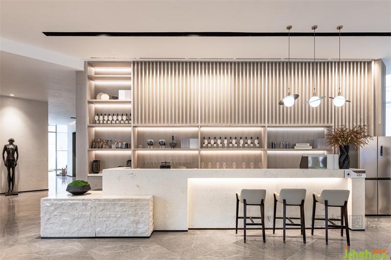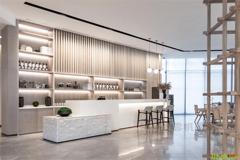 水吧洽談區(qū)細(xì)膩的木飾面和木格柵為空間帶來(lái)的光感讓賓客感受到陽(yáng)光的溫度,給賓客溫馨舒適的體驗(yàn)。米白色的水吧臺(tái)與臺(tái)面的體塊穿插,立體的營(yíng)造了充滿(mǎn)藝術(shù)觀感的視覺(jué)感受。身處空間中的人們,可以在質(zhì)樸溫和的沉浸體驗(yàn)環(huán)境中,放下都市生活的疲憊與壓抑,感受片刻的美好。