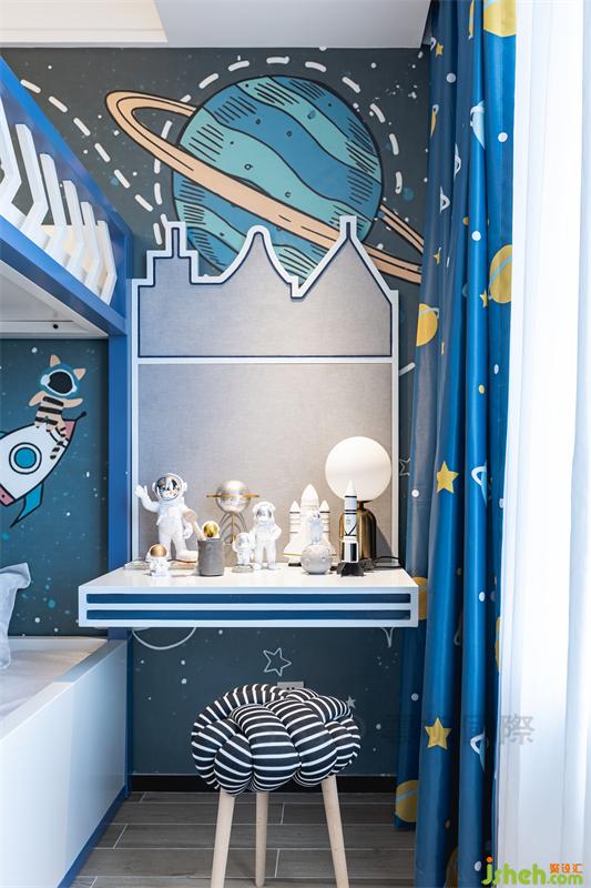 兒童房以熱氣球、海洋、太空主題形式,在孩子幼年時(shí)期身體各方面迅速發(fā)育階段,這個(gè)階段孩子對(duì)周圍充滿極大的興趣,比較好動(dòng)。艷麗的色彩能夠激起孩子的活力,使孩子產(chǎn)生興奮,而且強(qiáng)烈的色彩也能夠刺激孩子的視覺神經(jīng),有利于孩子眼睛視力發(fā)育。