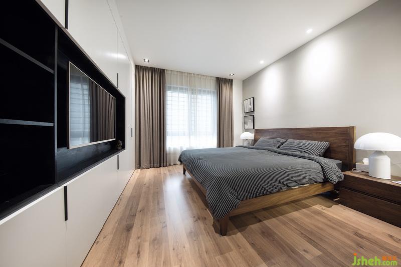 臥室的設(shè)計(jì)簡(jiǎn)約而質(zhì)感,延續(xù)了整體的黑白配色,在木質(zhì)地板與灰色系的床品下,鮮明的色彩對(duì)比也得到了平衡,為屋主營(yíng)造出靜謐而質(zhì)感的睡眠環(huán)境。