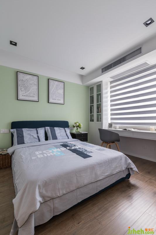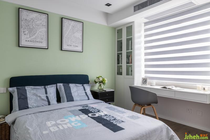 次臥主要還是以居家舒適為主,淡綠色的乳膠漆搭配簡潔的家具形式,輕松而愉悅。