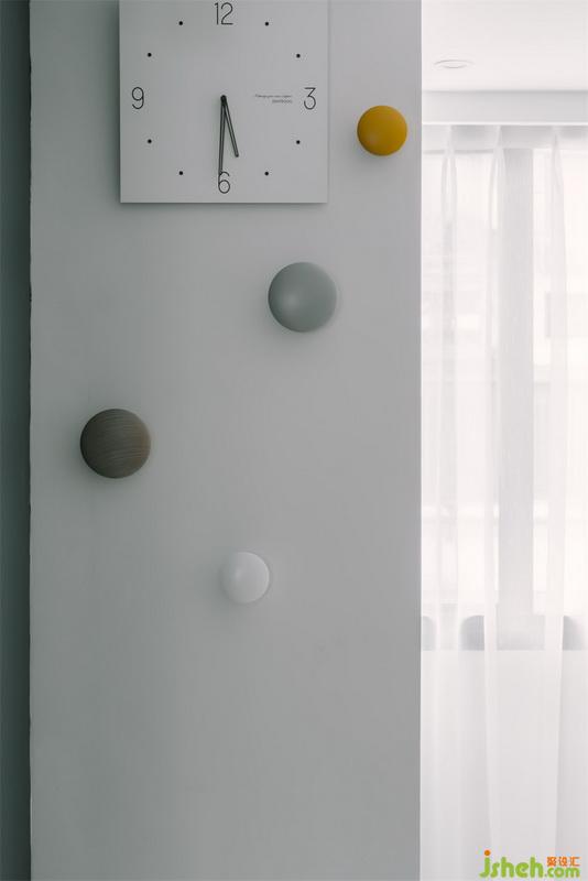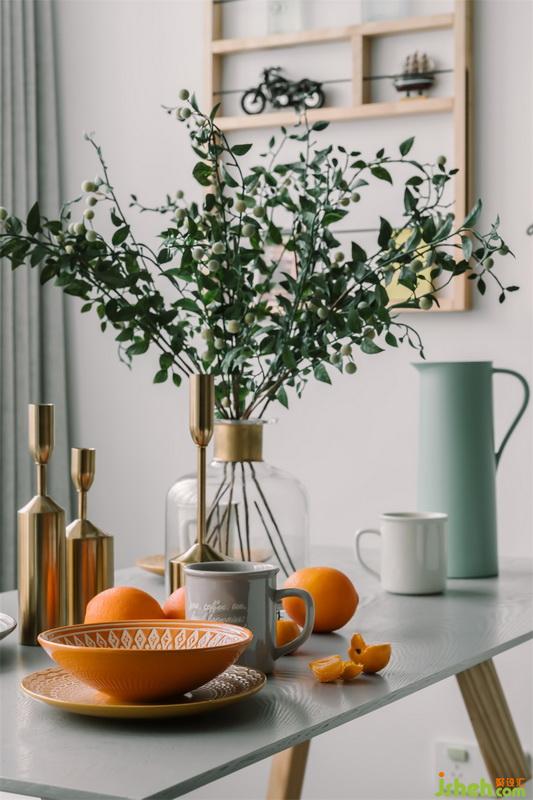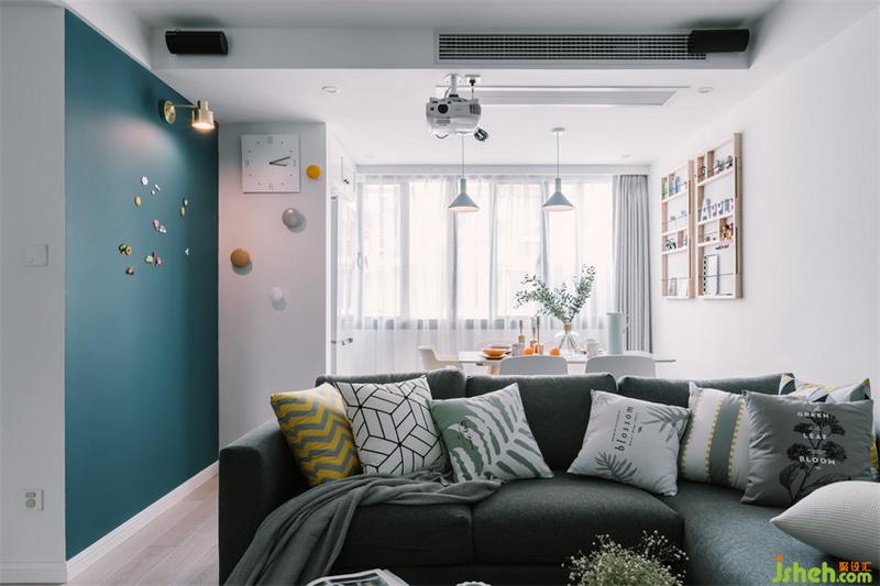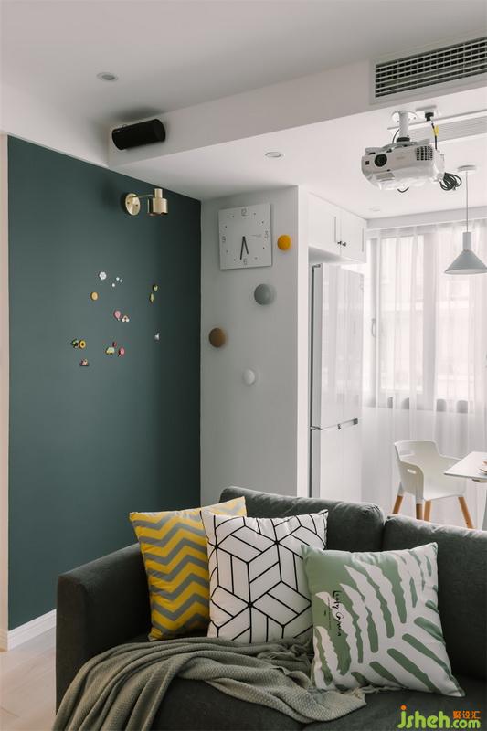 設(shè)計(jì)公司用開放式的客餐廳設(shè)計(jì)為小空間帶來更為通透靈活的視覺感受,輕巧的餐桌椅搭配淺藍(lán)色的吊燈,展示架以溫柔的木元素搭配精致趣味的一些飾品,塑造出輕盈舒服的感受,墻面上綠色的黑板漆為這里更添一抹優(yōu)雅,營造出質(zhì)感氣息。