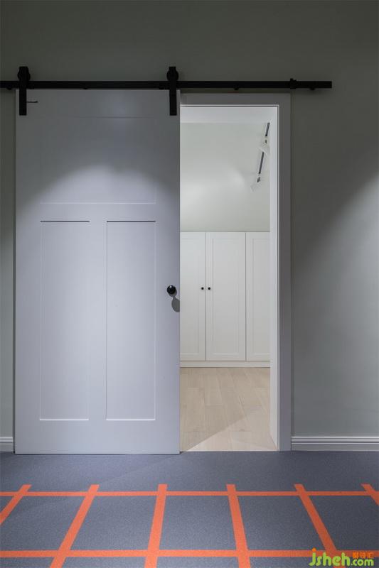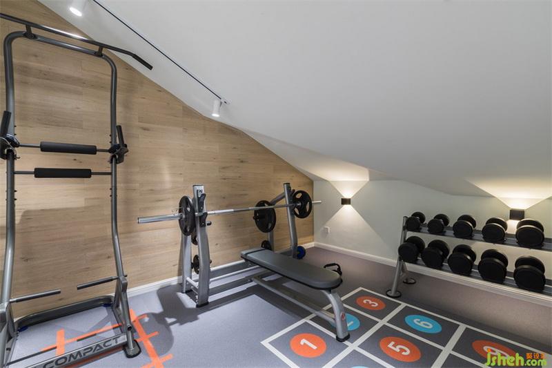 二樓專門留有當(dāng)作健身活動的空間,地板上墻,地面設(shè)計(jì)公司采用地膠的涂刷方式,營造出平靜積極的氛圍。