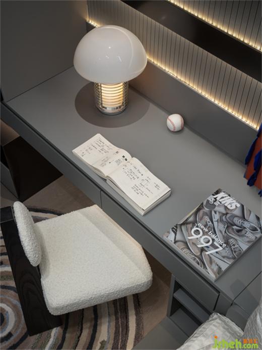 文化的歷久彌新,除了世世代代的延續(xù)與傳承,也要有樂于接受外來新事物新挑戰(zhàn)的風度。兒童房空間人物設(shè)定是個喜歡"競技與智慧結(jié)合"的棒球運動孩童,棒球運動主題兒童房,開啟兒童對棒球運動及未來新事物的無限遐想及探索。樣板房設(shè)計對于孩童來說不僅是熱愛所在,更是追尋精神的自由與未來廣闊的精彩生活。