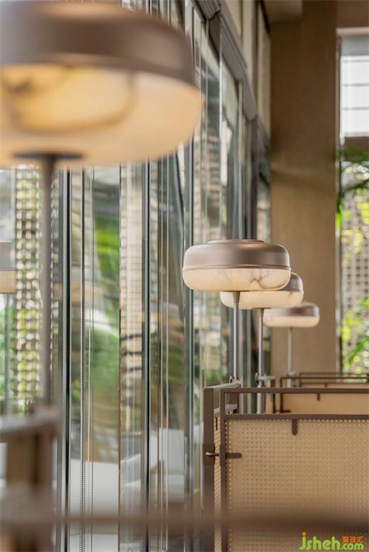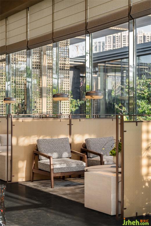 選用布面材質(zhì)的座椅和貼近日光顏色的米色藤布,斑駁的光影如同時(shí)間的筆觸落在空間里,增添了一份歲月的沉淀。
