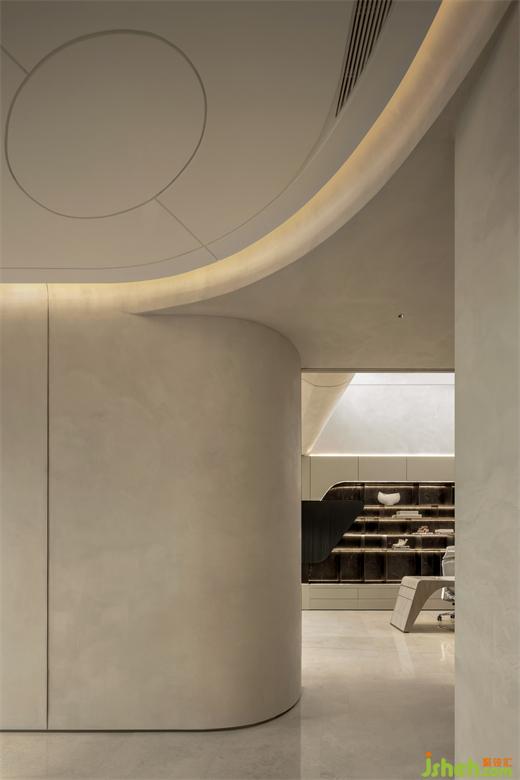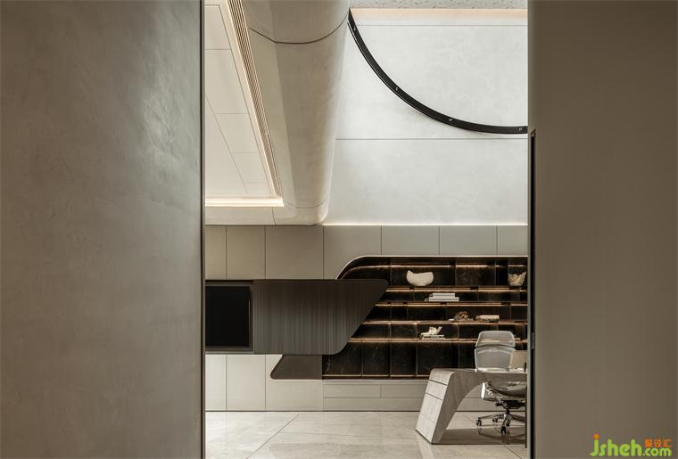 臥室從電影《遺落戰(zhàn)境》的空間場(chǎng)景凝練靈感,干練簡(jiǎn)潔的線條令空間充滿前衛(wèi)的未來(lái)感。