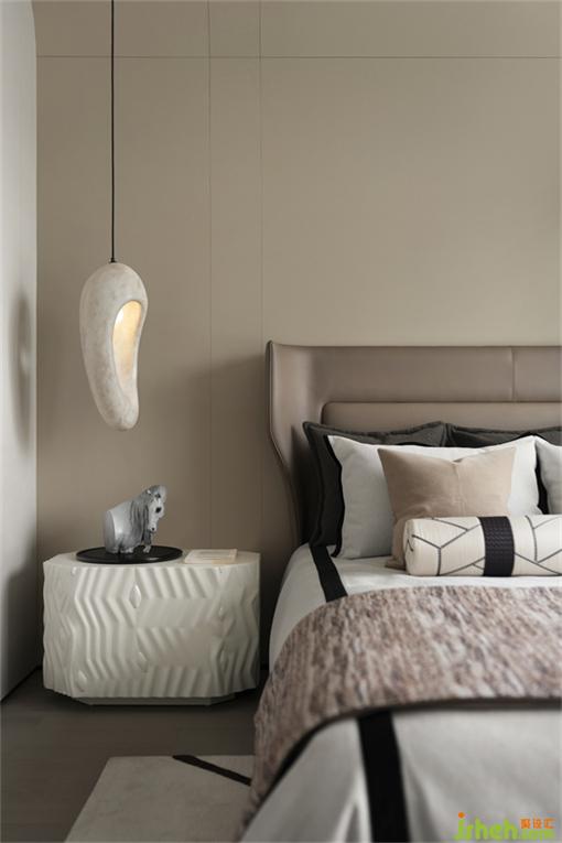 米色系和棕色系的交織為空間增添了一份故事感,隨著夜幕降臨,晚風(fēng)吹進來合上了案臺上的書,燈火漸暗,一切歸于平淡,生活的從容與美好常常源于這些細微的感受。