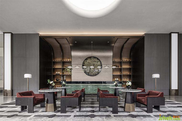 水吧主材提取了當(dāng)?shù)劓闹莞G的工藝及色彩打造的手工磚,金屬網(wǎng)與古銅色層板,售樓處設(shè)計(jì)用材質(zhì)的肌理營(yíng)造多元、多層次造型,傳統(tǒng)技藝與當(dāng)代審美在此相融相生,散發(fā)出新生的力量。