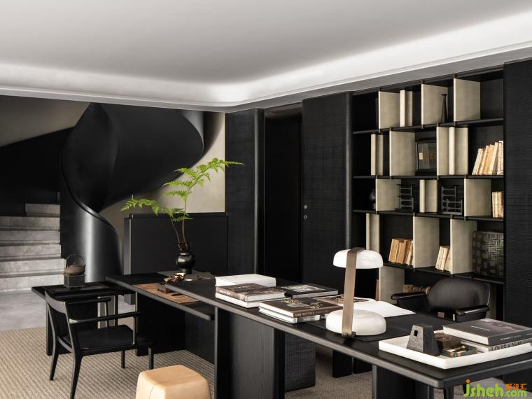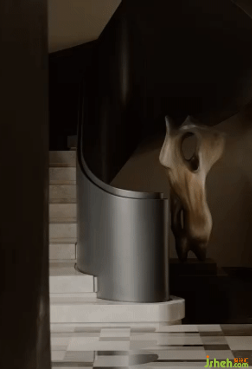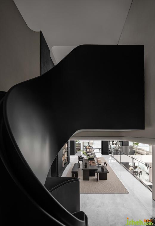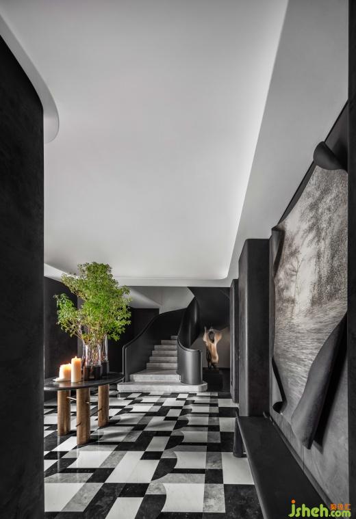 深色調(diào)的石面承載著復(fù)古奢華,與簡白的空間呼應(yīng),樓梯優(yōu)雅的曲線不斷調(diào)動著五感,讓人全身心融入到這恢弘壯麗而又平和寧靜的氛圍中。