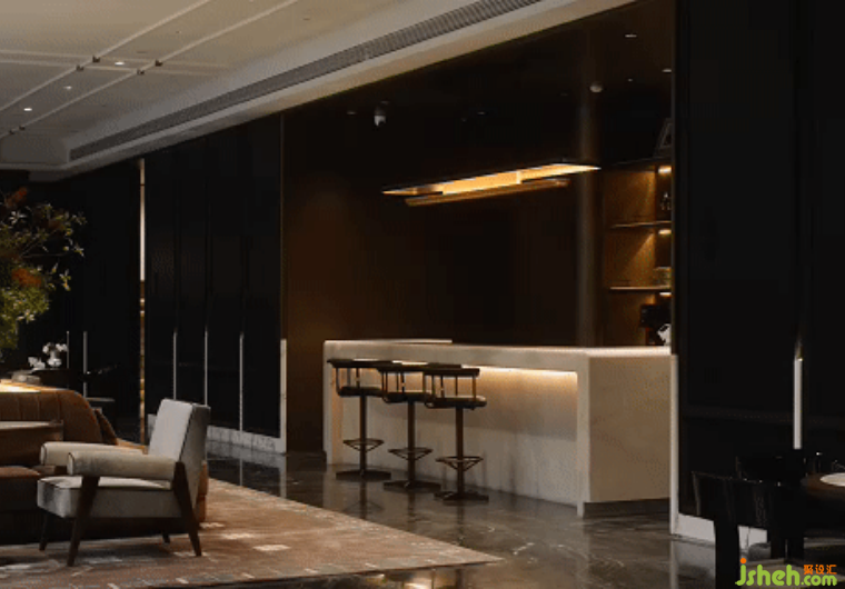 設(shè)計(jì)介于文化和自然之間進(jìn)行敘事,中性色為主調(diào),黑金色和翡翠綠則生動演繹海派的細(xì)膩情愫。