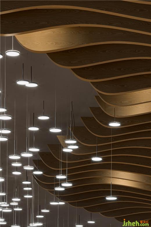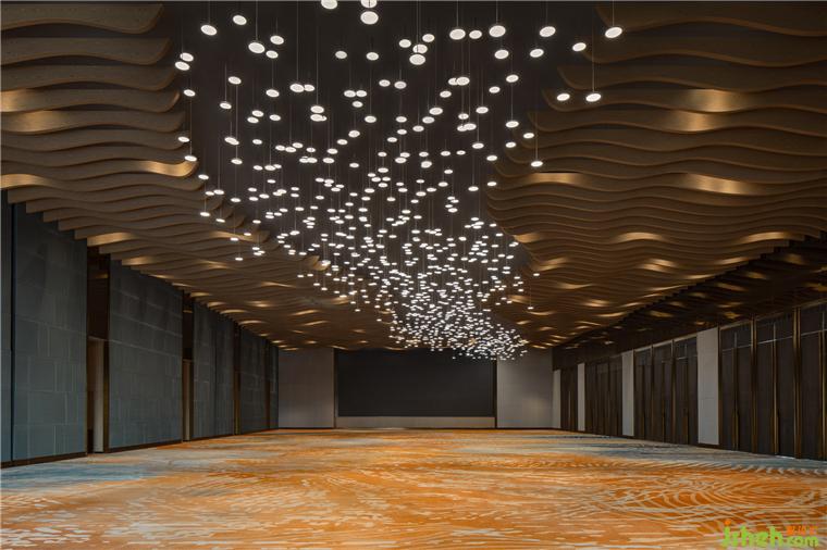 同時(shí)取漁市木箱為原形,多塊方正箱板穿插墻面,上海松江凱悅酒店設(shè)計(jì)入口處更堆疊香料、稻米、酒釀,特意布置的開放式廚房正滋滋響著陣陣美食香氣……可觸、可視、可聞、可嗅、可品,由外而內(nèi)締造全感官場(chǎng)域。