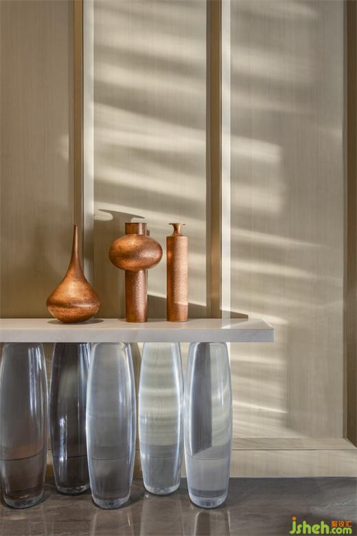 特別研發(fā)的長案茶臺,有序陳列著精致茶器,禮迎高朋逸客。秋香色斑駁煙柳,圍合荼白陶器,西安浐灞華邑酒店設(shè)計使人不經(jīng)意間放松下來。陽光澄澈,柳色鎖不住,茗香越墻來。