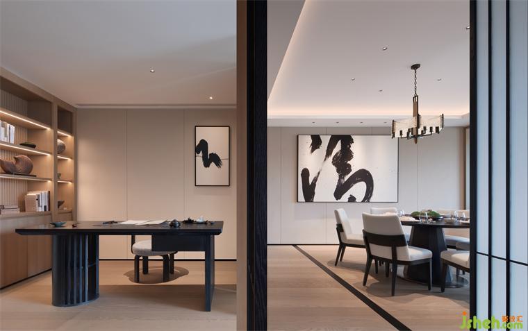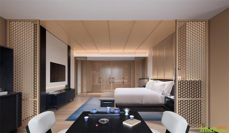 品茶觀書、禪坐冥想,看一葉落峰前,山空月滿,蟲鳴叫碎滿天星漢。萬千俗務相忘于自然,做一回山中閑客。南京酒店設(shè)計行政套房延續(xù)極簡風格,尺度開闊,雍容大氣。典雅東方家具,當代書法藝術(shù)品添色豪邁氣勢。
