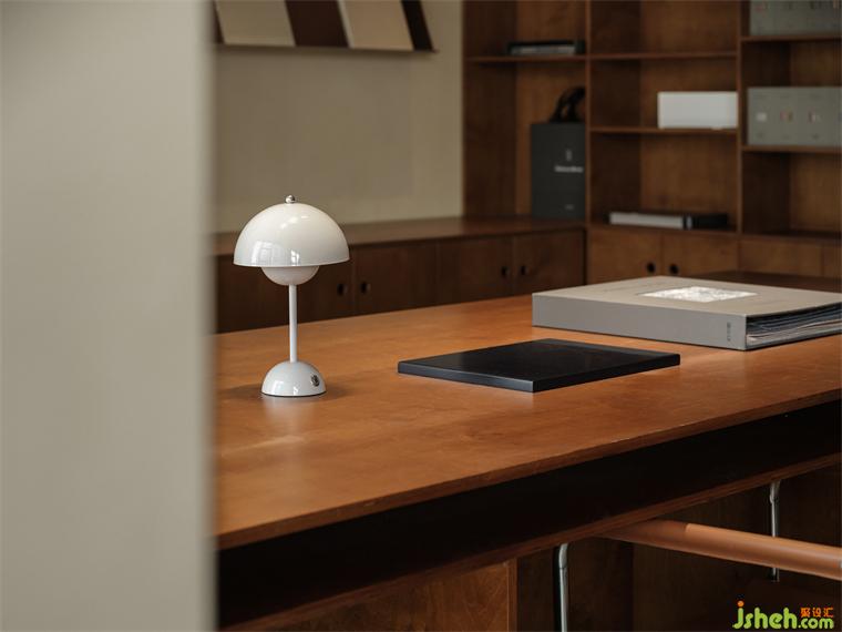 在長廊的盡頭,豁然開朗的天光讓眼前的空間展現(xiàn)無疑。木質(zhì)的溫柔交織金屬的凌厲,引導出開放空間中的包容與多元,新鮮的思緒肆意飄游,或倚靠于桌角,或仰躺于天花。