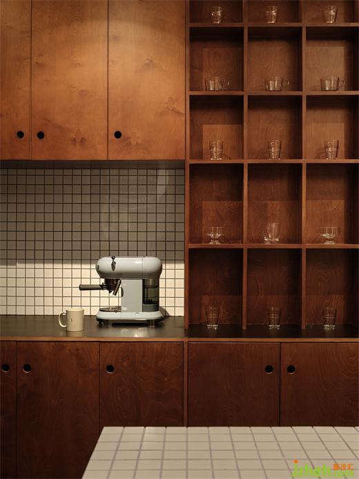 推開(kāi)那扇“藍(lán)色大門(mén)”,依然是溫暖的木色鋪成,讓你自然地滑入另一個(gè)綺麗的夢(mèng)境,點(diǎn)點(diǎn)的關(guān)于食物的溫暖撫慰在你的胸口,暖黃的燈光打在馬賽克的桌面,辦公室設(shè)計(jì)每一塊馬賽克都反射出關(guān)于美食的想象,與鱗次櫛比的儲(chǔ)物柜形成和諧的構(gòu)成關(guān)系,延伸出空間的規(guī)則美感。