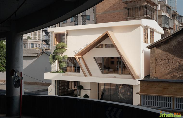 「AURORA DESIGN」此次接到的是一個(gè)舊式居民樓改造,珠寶展廳設(shè)計(jì)項(xiàng)目坐落在昆明市中心的老街區(qū),毗鄰立體停車(chē)場(chǎng)、舊式民居和小吃街。場(chǎng)地周邊的復(fù)雜環(huán)境讓項(xiàng)目變得有趣,新舊相交的張力將空間的生命延續(xù),“春天”隨時(shí)發(fā)SHENG。