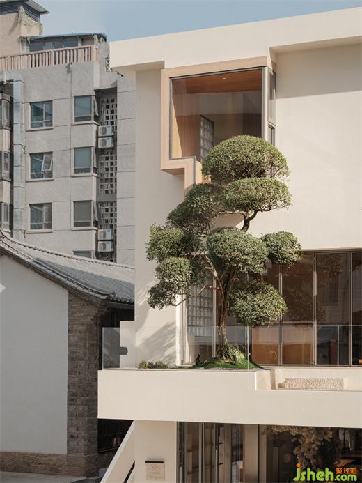 穿過(guò)工作區(qū),一樹(shù)綠意傾瀉而下,設(shè)計(jì)師保留了原址的綠植,將西側(cè)的植栽移置露臺(tái)處,營(yíng)造出工作中的‘自然時(shí)刻’,讓人沉靜愉悅,心生安然。