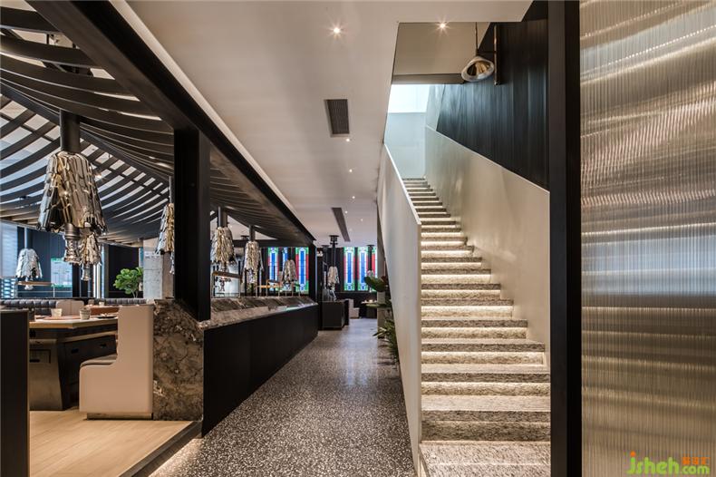每一格的樓梯都散發(fā)出與室內(nèi)空間色調(diào)相映的輪廓光,增添大大的儀式感。餐廳設(shè)計