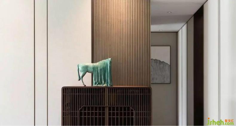 本案設(shè)計師糅合了現(xiàn)代前衛(wèi)和傳統(tǒng)中式的元素,積極打造更加適合現(xiàn)代人的生活方式。湖光瀲滟山色好,詩意棲居心自安。